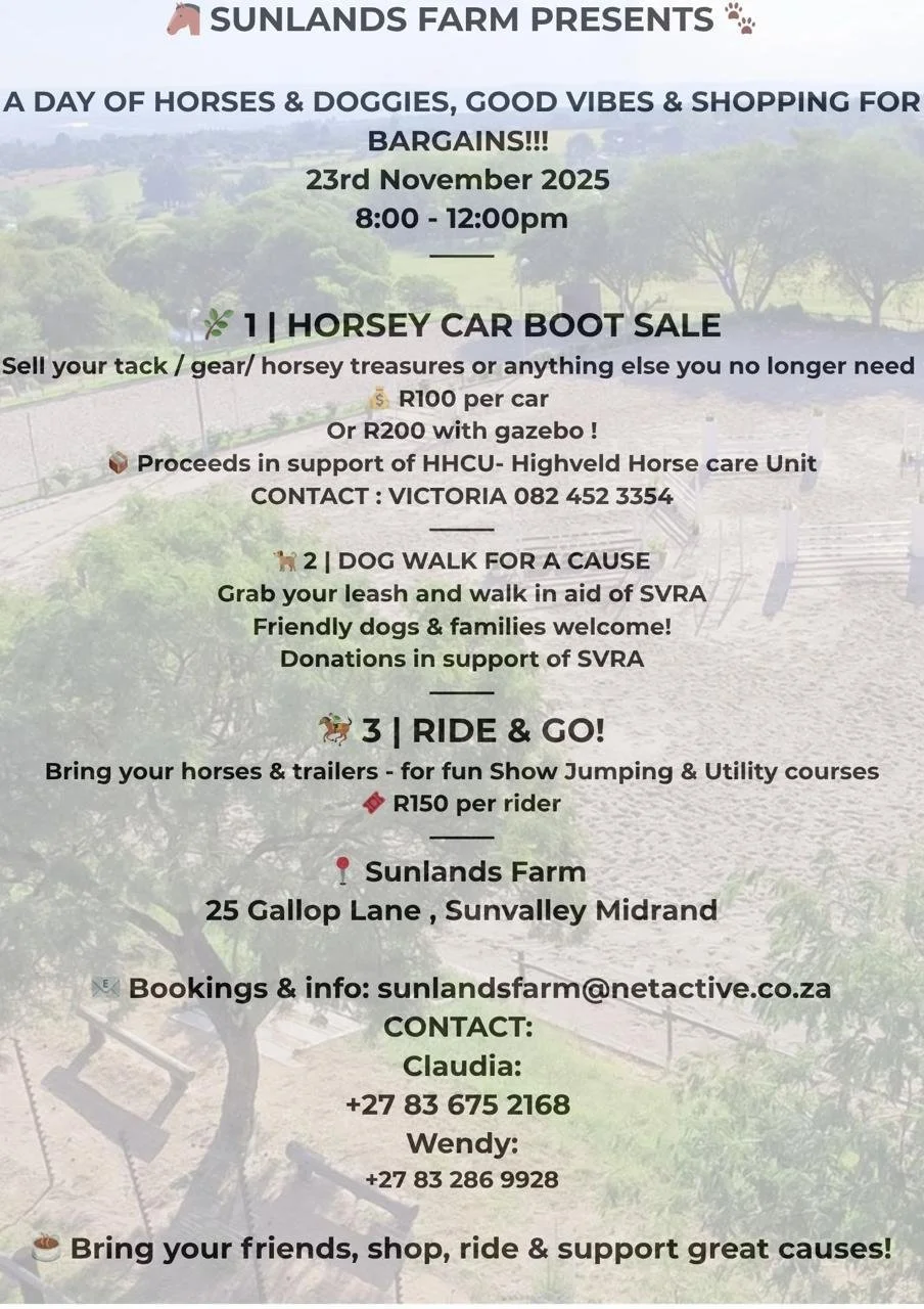 Sunlands will be hosting a Training Day, Market & Dog Walk 23 November 2025
